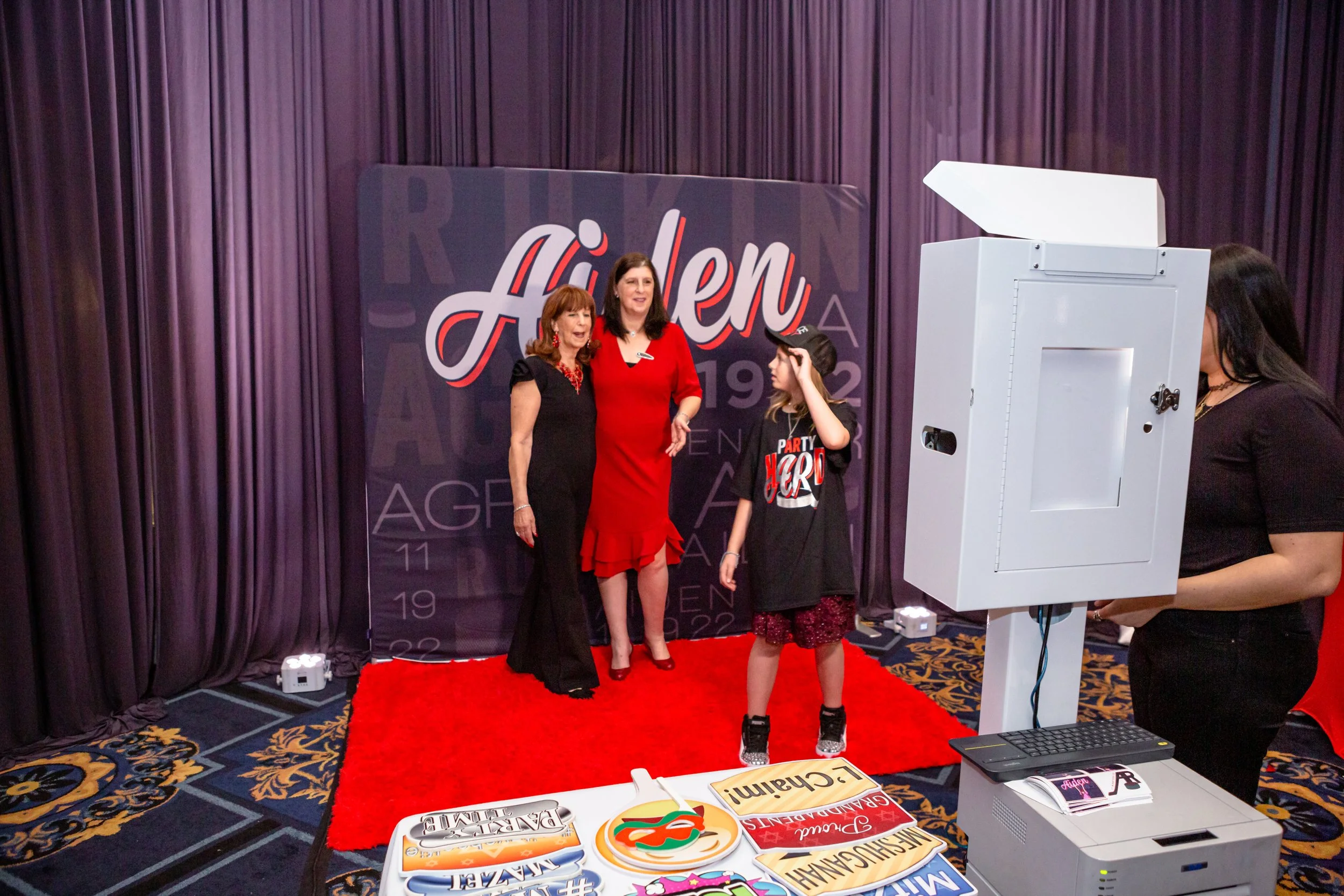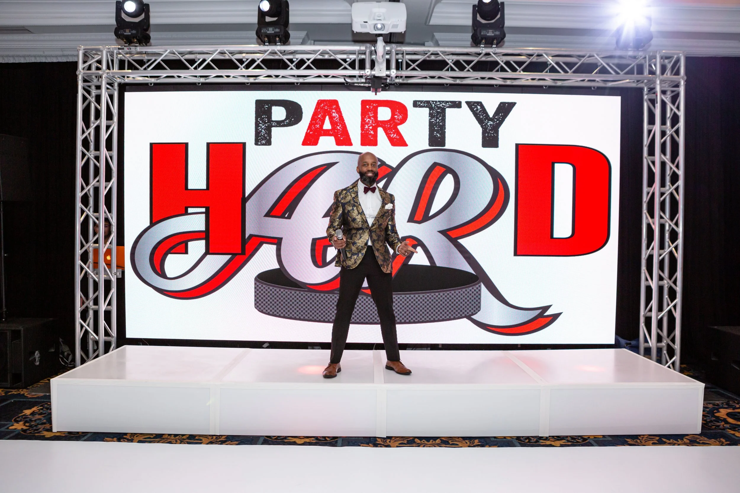 Lighting / Video Wall / Stages / Drapery / Lounge Furniture / Custom: PhotoBooth Enclosure, Pillows, Banners and Bar